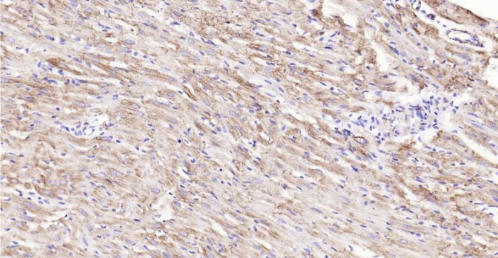 Desmin (approximately 53 kDa) exhibits a high degree of tissue specificity, its expression being predominantly confined to all types of muscle cells (cardiac, skeletal and smooth muscle). Regulation of desmin expression is stage and tissue-specific, since it is induced during terminal development of, for example, skeletal muscle cell differentiation. In skeletal en cardiac muscle cells desmin is localized in the Z-disk region and at the intercalated disk. The expression pattern of desmin in smooth muscle is much more heterogenous. Coexpression of vimentin and desmin has been observed in tumors derived from muscle tissue, i.e. rhabdomyosarcomas and leiomyosarcomas. Furthermore, during myocard dysfunction dramatic changes in the distribution of desmin have been observed.