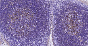Immunohistochemical analysis of paraffin embedded human tonsil tissue slide using IHC0234H (Human CD21 IHC Kit).