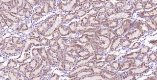 Immunohistochemical analysis of paraffin embedded rat kidney tissue slide using IHC0382R (Rat ABAT Kit).