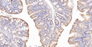 Immunohistochemical analysis of paraffin embedded rat colon tissue slide using IHC0442R (Rat PON1 IHC Kit).