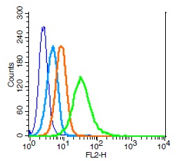| Interleukin 2 (IL2) receptor gamma chain (IL5212R gamma) is a cell surface glycoprotein expressed by a variety of leukocytes including T cells, B cells, NK cells, monocytes, macrophages, and neutrophils. IL2R gamma is also known as CD132, common cytokine receptor gamma chain, and gamma c. IL2R gamma forms complexes with other cell surface proteins including CD25 (IL2R alpha), CD122 (IL2R beta), CD124 (IL4R alpha), CD127 (IL7R), and others. IL2R gamma complexed with other cell surface proteins forms receptors for the cytokines IL2, IL4, IL7, IL9, and IL15. Acting through the IL2R gamma containing complexes, these cytokines regulate lymphocyte development and activation. Chemical cross linking experiments reveal that IL2R gamma is able to bind cytokines only when complexed with these other cell surface proteins. In addition to interacting with other cell surface glycoproteins, IL2R gamma associates with several cytoplasmic tyrosine kinases including JAK3 (Janus Kinase 3), JAK1, Syc, and Lyc. Cytokine binding to the IL2R gamma containing receptor complexes activates these tyrosine kinases. Once activated, these tyrosine kinases phosphorylate their associated receptors, creating docking sites for signaling molecules such as PI 3 kinase. The activated tyrosine kinases also phosphorylate downstream regulators including STAT3 (Signal Transducer and Activator of Transcription 3), STAT5, and STAT6. The various cytokines that bind to IL2R gamma containing receptor complexes exert their effects through unique repertoires of cytoplasmic signaling molecules. IL2, IL7, and IL9 exert their effects through cascades, which activate STAT3 and STAT5, while IL4 activates STAT6. IL2 and IL15 exert their effects through cascades, which activate the MAP kinase cascade. IL7 exerts its effects through a cascade that results in VDJ immunoglobulin gene rearrangement. |
