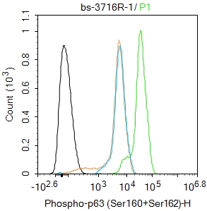 | p63 phospho S160/162; p63 phospho Ser160/Ser162; p-p63 Ser160/Ser162; AIS; Amplied in squamous cell carcinoma; Bp51A; Bp51B; p63 Alpha; Chronic ulcerative stomatitis protein; CUSP; DN p63 alpha 1; DNp63; EEC3; Keratinocyte transcription factor; Keratinocyte transcription factor KET; KET; LMS; NBP; OFC8; p40; p51; P51/P63; p53 like transcription factor; p53 related protein; p53-related protein p63; p53CP; p63; P73; p73H; p73L; RHS; SHFM4; TP53CP; TP53L; TP63; TP73; TP73L; Transformation related protein 63; Trp53rp1; Trp63; Tumor protein 63; tumor protein 63 kDa with strong homology to p53; Tumor protein p53-competing protein; Tumor protein p53-like; tumor protein p63; Tumor protein p73; tumor protein p73-like; P63_HUMAN. |