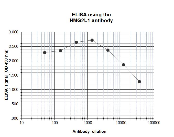 | Polyclonal antibody raised in rabbit against human HMG2L1 using two KLH-conjugated synthetic peptides containing a sequence from the N-terminal and central region of the protein, respectively |