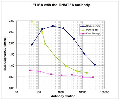 | Polyclonal antibody raised in rabbit against human DNMT3A, (DNA methyltransferase 3A), using a KLH-conjugated synthetic peptide corresponding to amino acids 44-58 |
