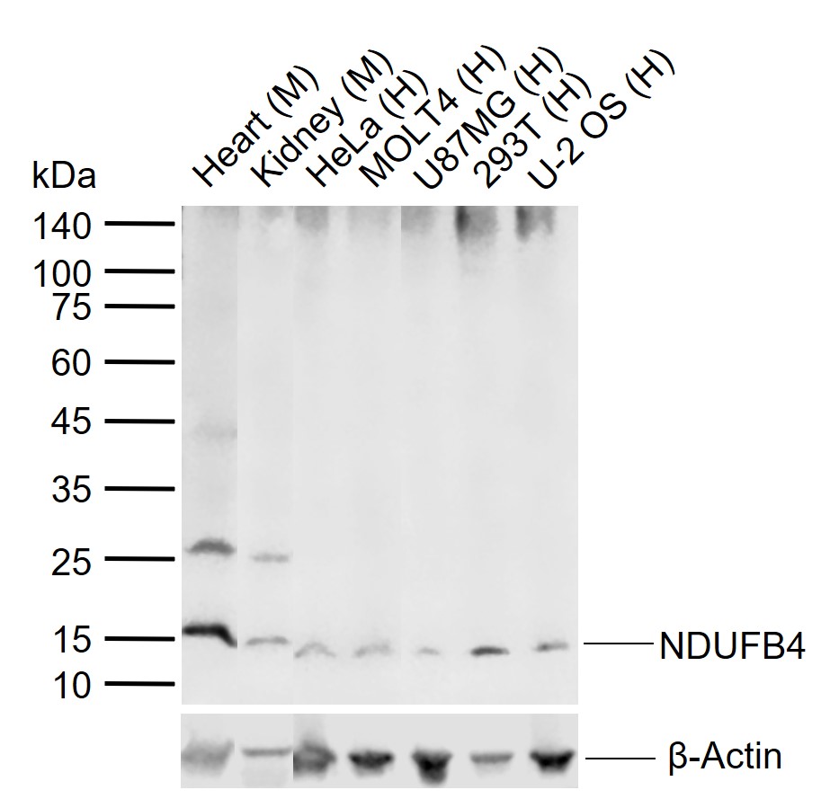 | Source | Recombinant fusion protein containing a sequence corresponding to amino acids 1-90 of human NDUFB4 (NP_001161803.1). |