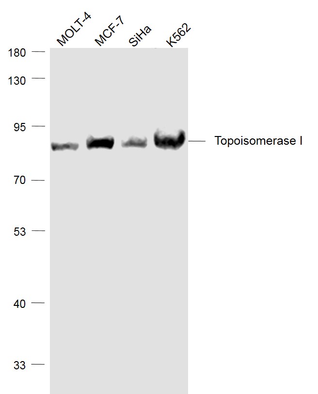| This TOP1 antibody is generated from a mouse immunized with a recombinant protein from the N-terminal region of human TOP1. |