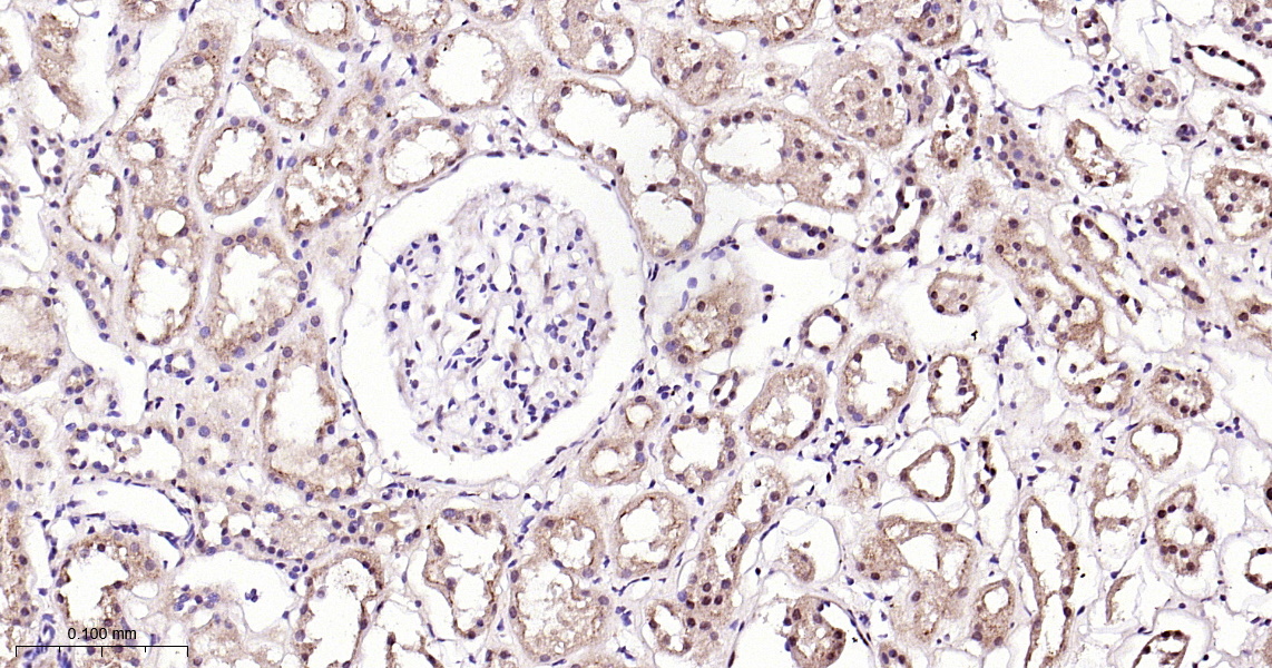 | Nox4 is a renal gp91-phox homolog highly expressed at the site of erythropoietin production in the proximal convoluted tubule epithelial cells of the renal cortex. Nox4 is also expressed in fetal tissues, placenta, glioblastoma and vascular cells. Like gp91-phox, the enzymatic activity of Nox4 produces superoxide anions. In vascular cells, the addition of angiotensin II increases Nox4 expression, which suggests a role for Nox-4 in vascular oxidative stress response. |