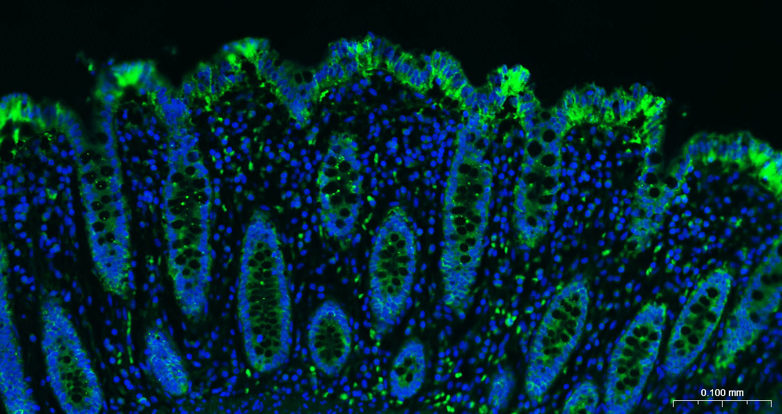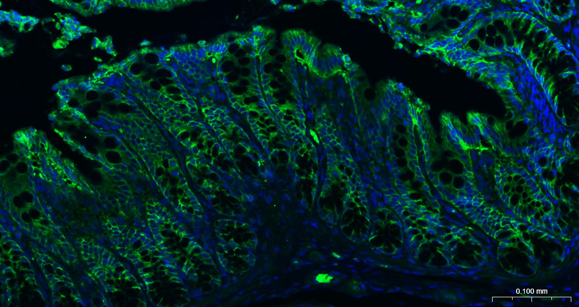 Background May act as a physical homophilic interaction molecule between intestinal epithelial cells (IECs) and intraepithelial lymphocytes (IELs) at the mucosal epithelium for providing immunological barrier as a first line of defense against mucosal infection. Plays a role in embryonic stem cells proliferation and differentiation. Up-regulates the expression of FABP5, MYC and cyclins A and E.